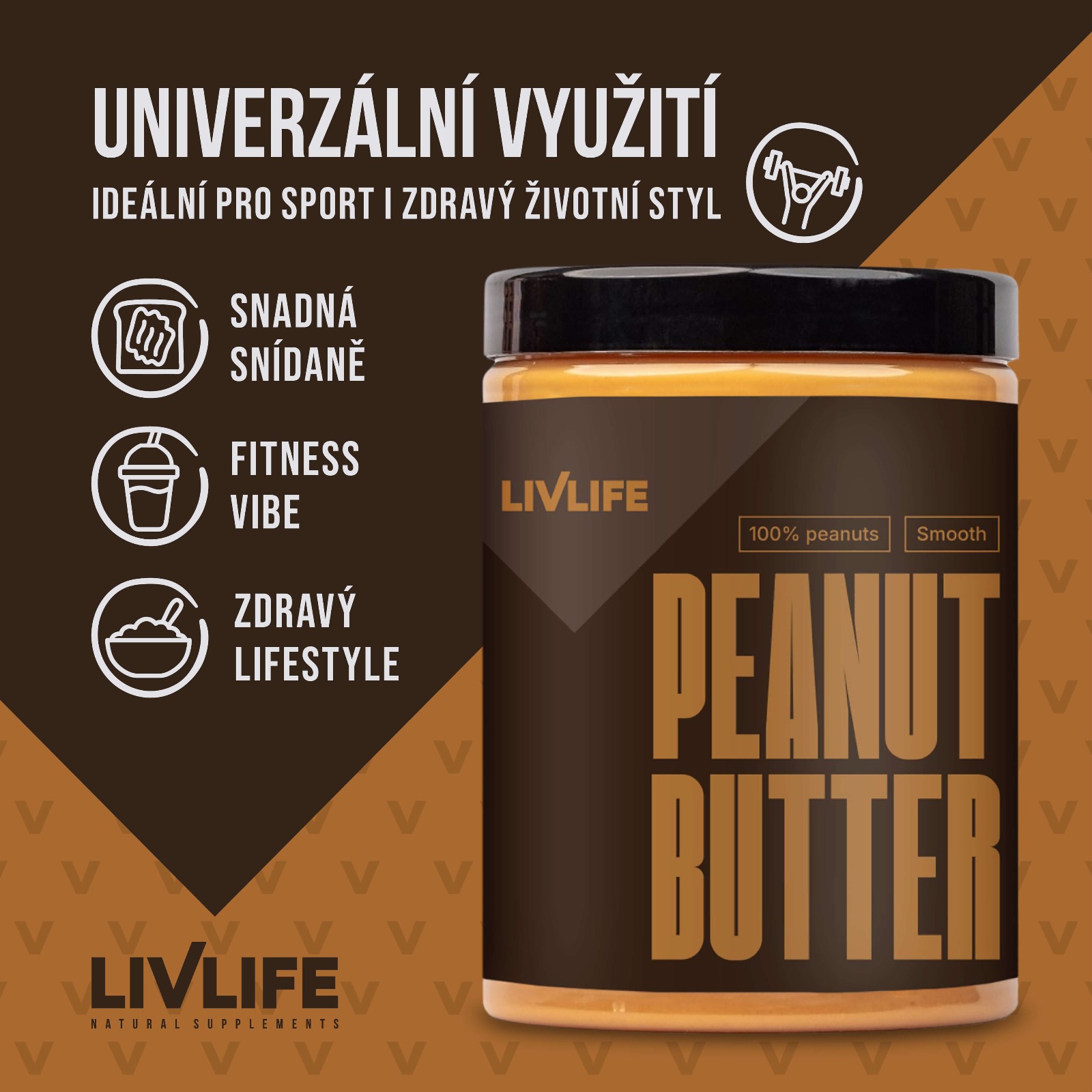Livlife Arašídové máslo 1000 g – 100 % jemně namleté arašídy bez cukru a palmového oleje, čistá krémová chuť v každé lžičce.