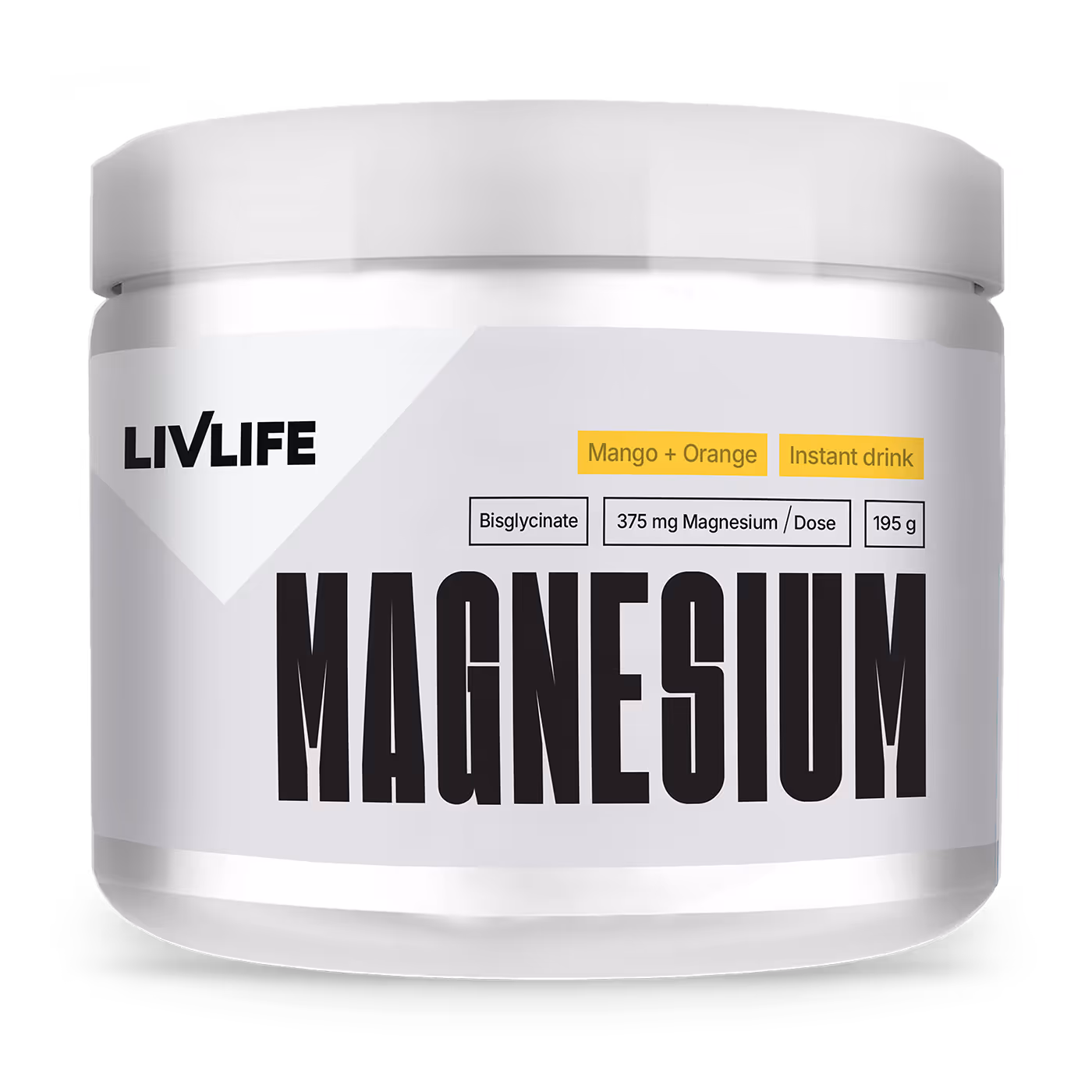 Livlife Magnesium Bisglycinate 12% je instantní nápoj s osvěžující chutí manga a pomeranče, který spojuje účinnost chelátové formy hořčíku (bisglycinát) s přírodními aromaty a jemným doslazením stevií.