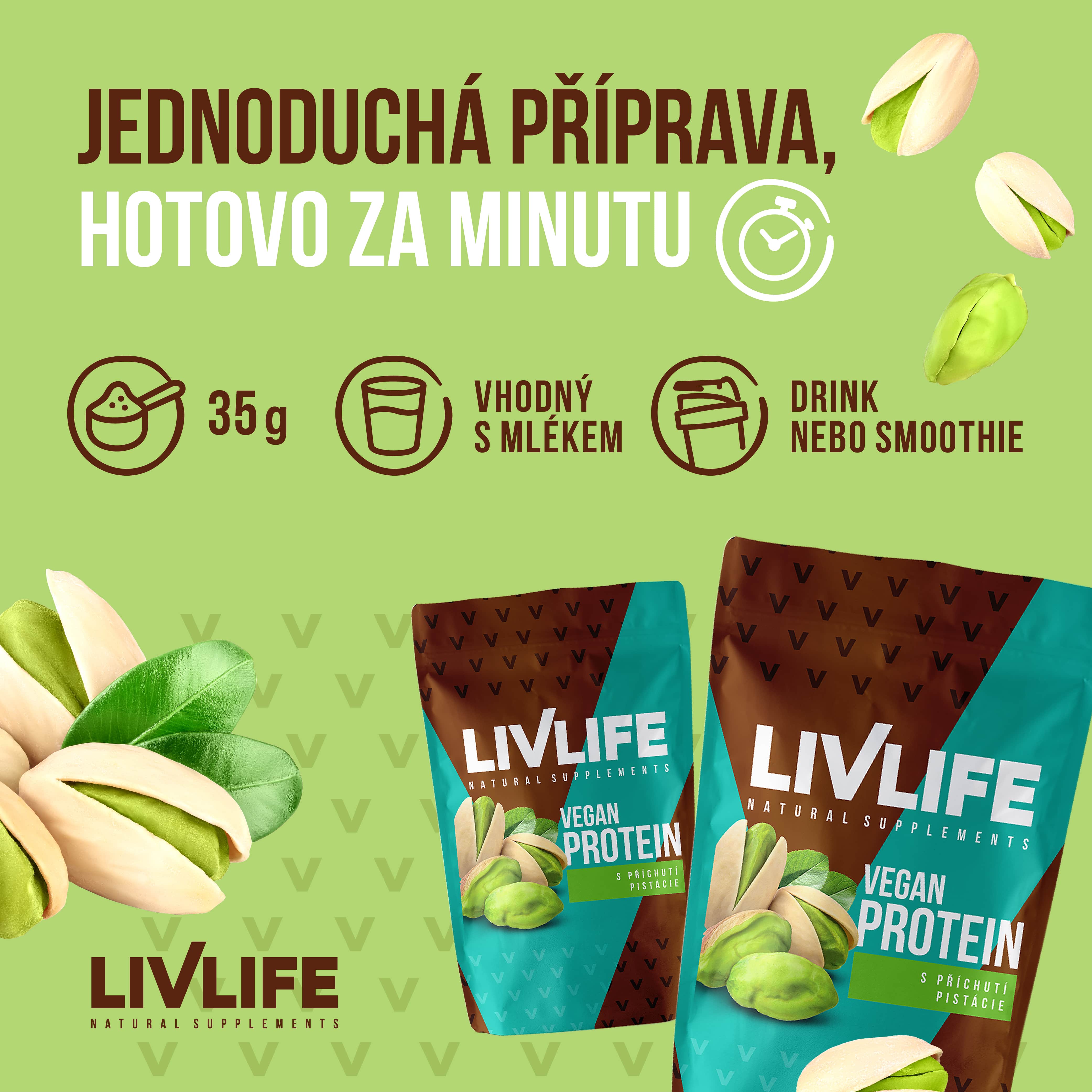 Objevte kombinaci kvalitních rostlinných bílkovin a jedinečného pistáciového aroma. LIVLIFE Vegan Protein – Pistácie nabízí perfektní mix hrachového a slunečnicového proteinu, který dodá tělu vše potřebné pro regeneraci i růst svalů. Lehce stravitelný, bez přidaného cukru a s přírodním sladidlem ze stévie. Skvělý společník po tréninku i kdykoli během dne.
